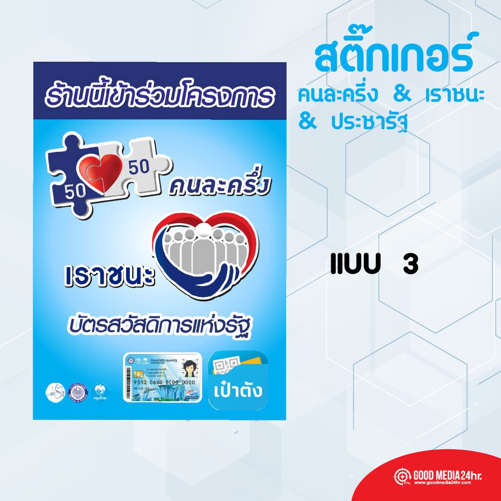 ป้ายโครงการ คนละครึ่ง ชิม ชอป ทั่วไทย รัฐออกให้ 50% ร้านค้าที่เข้าร่วมโครงการ สนใจสั่งได้เลยจร้า เลือกขนาด แก้ไขแบบ ใส่โลโก้ร้านค้าได้ตาม คนละครึ่ง. เปิดวิธีดาวน์โหลดแอพฯ เป๋าตัง รับเงิน 3,500 บาท หากลงทะเบียน คนละครึ่งเฟส 2 รอบเก็บตก วันที่ 20 ม.ค.